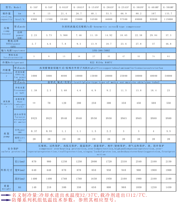 化工行業(yè)用防爆冷水機(jī)參數(shù)