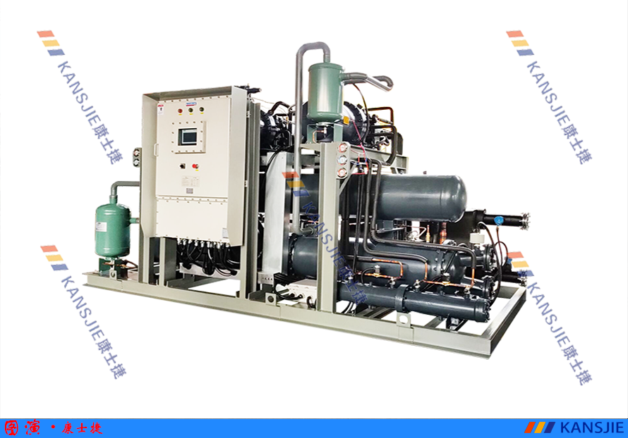4、復(fù)疊螺桿式防爆制冷機(jī)組,用于有超低溫控溫要求的工藝。