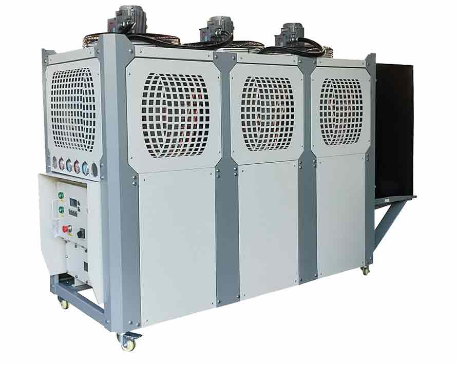 風(fēng)冷式防爆型化工制冷機組通過風(fēng)扇以空氣為冷凝方式的控溫設(shè)備,有箱式和螺桿式,單機輸出馬車從1HP~220HP.